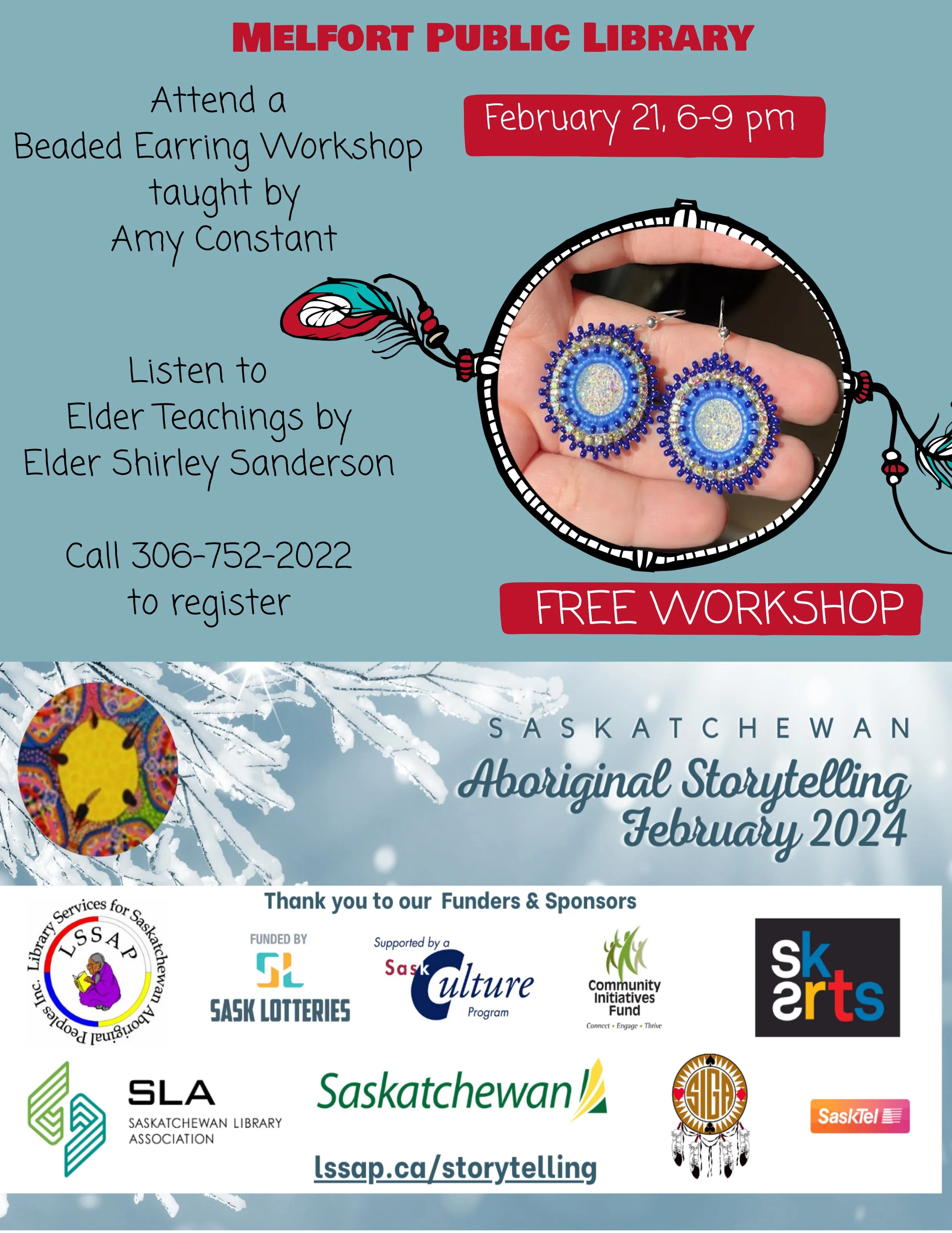 Wapiti Regional Library’s Melfort Public Library is hosting an evening of beading and teachings with Amy Constant and Elder Shirley Sanderson.